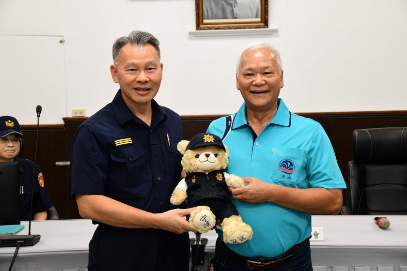 蔡經理表示,希望各位值勤平安順利,並預祝中秋節快樂!花蓮縣警察局局長陳百祿也特別致贈象徵警察精神與榮耀的「警察熊娃娃」予蔡經理,以表達對警察之友會長期支持與鼓勵的誠摯感謝。