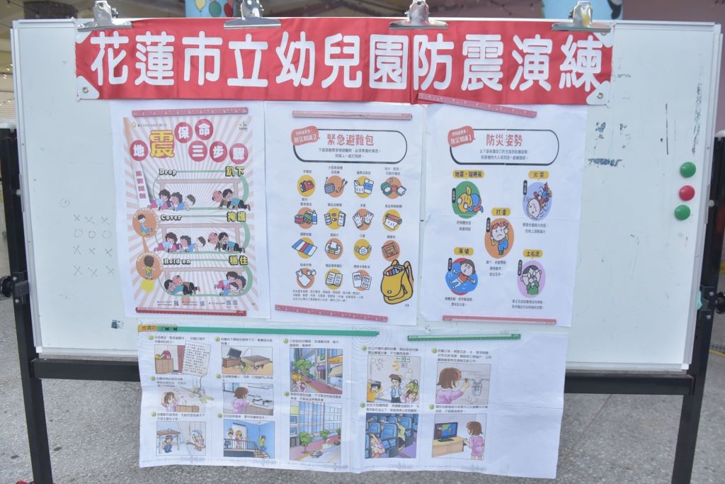 每年的9月21日是「國家防災日」,花蓮市立幼兒園配合全國「國家防災日」,由於今年的9月21日適逢星期日,花蓮市幼提前在19日實施地震避難掩護演練,小朋友在老師帶領下完成地震趴下、掩護、穩住的保命三口訣,在地震時能保護自己,市長魏嘉彥全程參與並給予孩子們滿分的肯定。