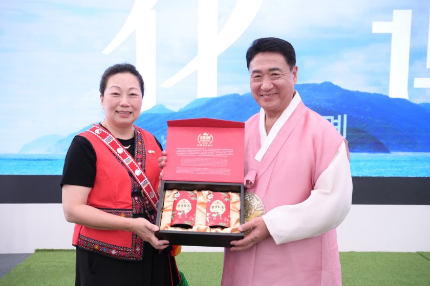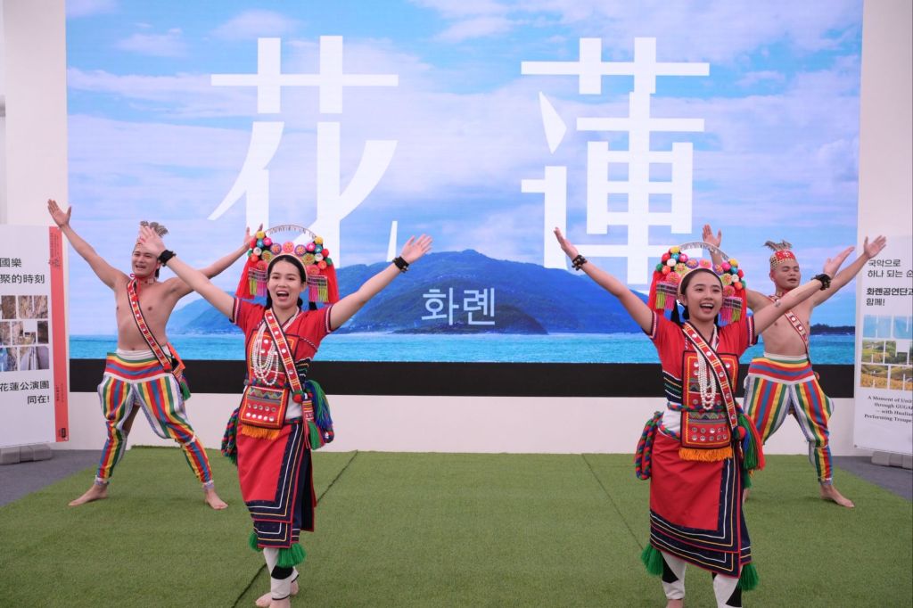 花蓮縣長徐榛蔚今(21)日率團出席韓國「永同世界國樂博覽會」(Yeongdong World Gugak Expo),並由花蓮縣政府「阿勒飛斯文化藝術團」於現場演出原民樂舞,主辦方韓國忠清北道永同郡守鄭永喆出席觀演,及忠州文化觀光財團中心長申戴旻陪同,展現花蓮原住民文化樂舞魅力。