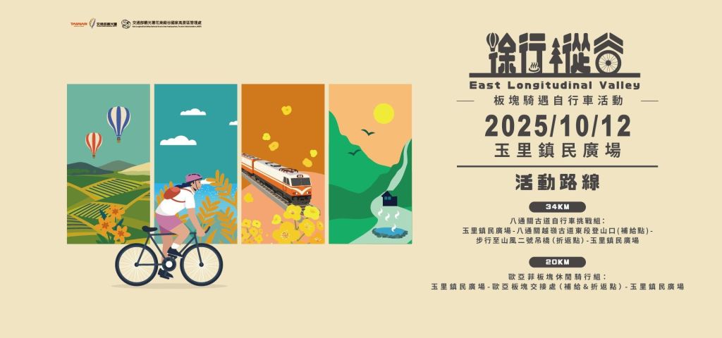 交通部觀光署花東縱谷國家風景區管理處(以下稱縱管處)近年以「永續、綠色旅遊」為核心發展方向,積極推動「徐行縱谷」品牌,將花東縱谷豐饒的田園景致、巍峨山川與多元人文融入慢遊體驗,打造全台獨具魅力的低碳旅遊模式。除了推廣旅遊之外,安全是旅遊活動最重要的考量之一,亦是我們最注重的。於是今年度縱管處規劃了「水域安全」與「自行車騎乘安全」主題宣導活動,上半年已於北區鯉魚潭宣導水域遊憩安全、南區鹿野完成龍田地區自行車安全宣導與演練,最後於9月21日移師縱谷中段,在風光明媚的玉里、富里及卓溪地區舉辦「自行車旅遊安全宣導」,藉由寓教於樂的方式,深化遊客旅遊安全意識。
