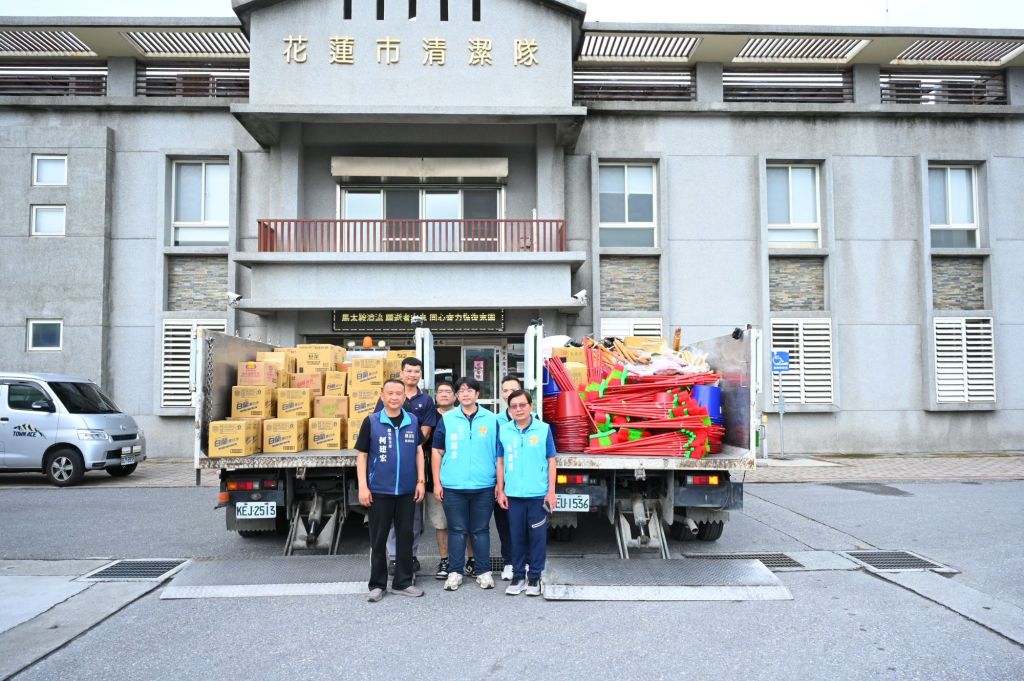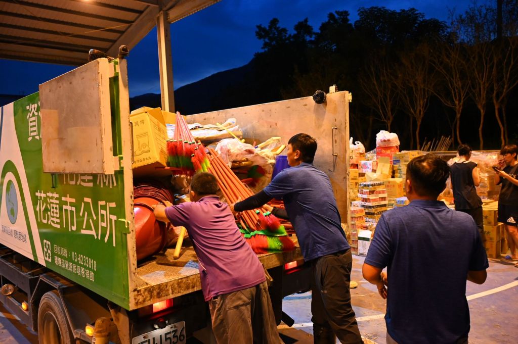 在資訊傳遞與現場支援方面,花蓮縣議員笛布斯.顗賚於第一時間協助災情通報與物資調度,提升整體援助效率。花蓮市清潔隊亦積極投入物資搬運工作,展現市政團隊與民眾齊心協力、共同抗災的決心。