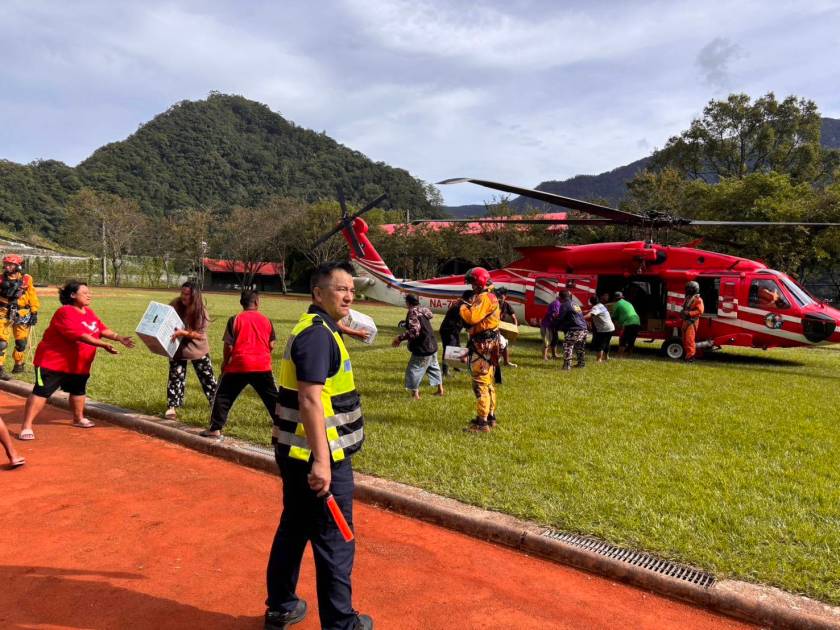臺東縣警察局關山分局利稻派出所所長胡松俊仁表示,災情發生後,員警第一時間掌握村落狀況,確認道路受損情形。由於利稻村約有三百多名居民,若交通無法即時搶通,恐面臨糧食及醫療資源不足的困境。臺東縣消防局與社會處隨即於昨(26)日緊急申請直升機支援,空投必要藥品及民生物資,以確保村民能安心度過封路時期。此次直升機馳援行動,特別安排一名護理師隨機進入村落,攜帶必備藥物及急救器材,並協助關懷村民健康狀況。運送物資計有肉包、罐頭、麵包、吐司、飲料等,足以應付村落基本需求,避免居民陷入斷炊危機。直升機降落於利稻村時,員警立即展開周邊警戒,確保現場秩序及人員安全,同時協助村民迅速搬運物資至指定地點,展現警民合作、同舟共濟的精神。此外,所長胡松俊仁並陪同部落會議主席邱強永,透過衛星電話與海端鄉公所保持即時聯繫,持續回報山區受災與需求情況,以利後續救災決策與支援調度,確保前線資訊能即刻傳達到指揮中心。胡所長進一步指出,目前利稻村內有水,電力仍中斷,行動電話可使用,訊號雖不穩定,但對外通訊尚屬暢通,村內居民人員均平安,並在地方幹部協助下安置妥當。員警將持續維護村內居民安全,協助路權單位道路管制,期交通能早日恢復通行。