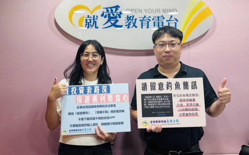 臺東縣警察局關山分局分局長龔士哲於今(30)日14時30分,受教育電臺臺東分臺節目主持人徐恩榮之邀,透過分享真實案例,提醒民眾提高警覺,防範新型態詐騙。節目在主持人明快且專業的引導下,龔分局長深入淺出地解析詐騙集團常見伎倆,並指出依據警政署統計,詐騙案件發生數前三名分別為「假網路拍賣」、「假投資」及「色情應召詐財詐騙」,其中「假投資」自110年起連續三年奪下財產損失金額第一名,平均每天騙走國人高達2至3億元。