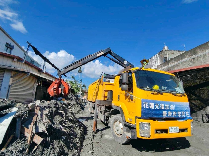 花蓮縣光復鄉馬太鞍溪堰塞湖壩頂因溢流,導致溪水暴漲,沖斷馬太鞍溪橋,光復鄉災情相當嚴重,臺東縣政府在縣長饒慶鈴指示下,消防局第一時間組成跨縣市聯合救援隊伍,立即前往花蓮協助救災,另外,災後復原刻不容緩,臺東縣環保局亦迅速整合人力與機具,協助災區加快環境復原腳步,讓鄉親早日回到正常生活。