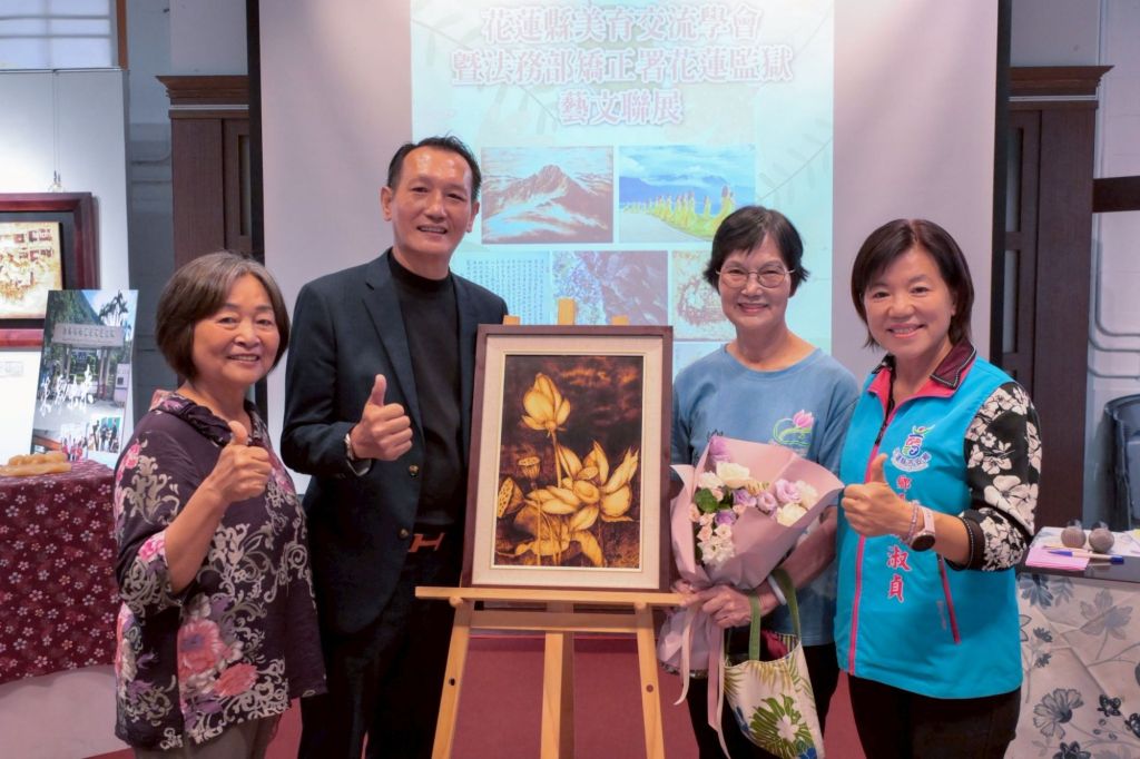 花蓮縣美育交流學會理事長彭榮美表示,學會成立以來每年舉辦二至三場展覽,此次是年度第三場並且與花蓮監獄合作聯展。展出內容除藝術家作品外,亦包含花監「烙畫才藝班」學員作品,以及木工、石雕職訓成果與珍貴文史檔案,帶領觀展民眾走進花監的「時光走廊」,了解教化藝文與技職訓練的成果。