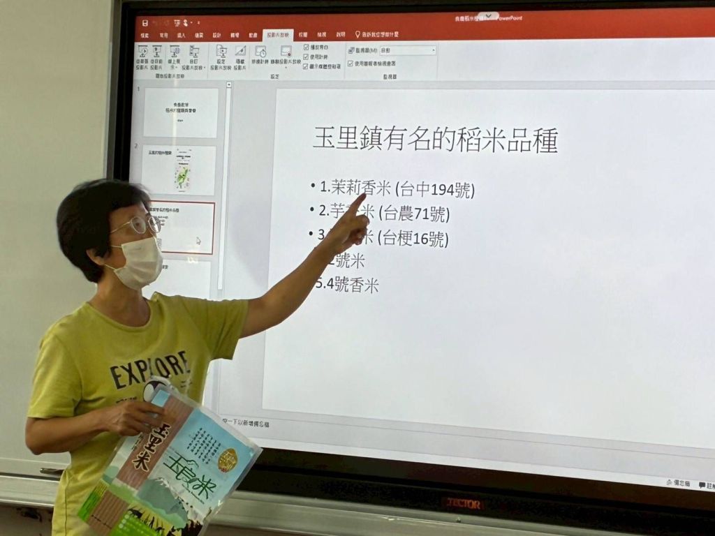 除了品嚐,課程還展示了自產自銷的米包裝設計。從產地認證標章、營養標示,到用心設計的料理食譜,一袋米不只是糧食,更是農民心血與品牌精神的體現。最後,邱老師拋出一個引人思考的問題:「為什麼玉里米特別好吃?」孩子們紛紛舉手回答,有人說是因為玉里的水質乾淨,有人說是因為氣候與土壤剛好,也有人說「因為農民用心」。這堂課,讓學生從舌尖學會感恩,從田野理解土地。