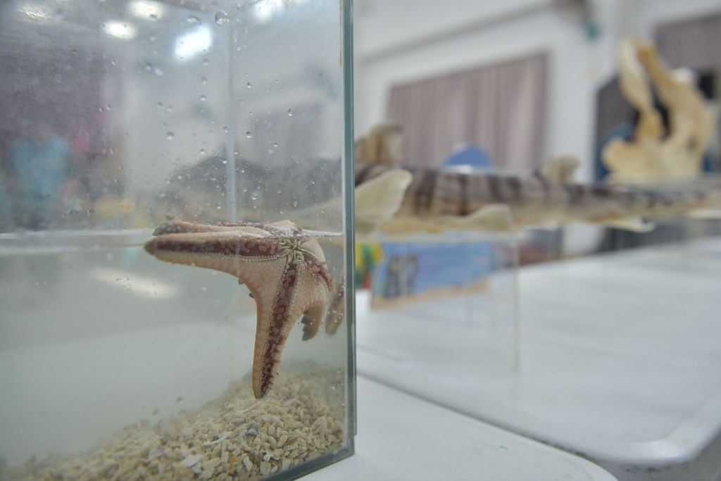 活動現場由遠雄海洋公園專業講師魟魚老師帶領,透過實體鯊魚標本觀摩,讓孩子近距離認識鯊魚的生態特徵與在海洋食物鏈中的重要角色;現場更設置「海星觸摸體驗區」,孩子們小心翼翼地用指尖觸碰海星,感受不同於陸地動物的奇妙觸感;另外老師們也讓大家嘗試觸摸鯊魚卵,讓孩子們驚呼連連。