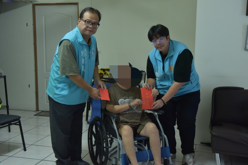 另一戶居住在民權里的林小姐原任職於醫療院所,在去年11月下班時遭逢重大車禍,導致下半身癱瘓,需長期復健恢復身體機能,其復健治療所費不貲,且事故保險皆已用罄,加上自身具低收資格,生活上確實相當困頓。魏市長除致贈慰問金與生活物資外,也關心孩子的就學情形,並請學校與社工保持聯繫,確保孩子能獲得穩定的學習環境與生活照顧。