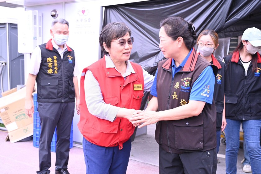 內政部長劉世芳今抵達花蓮,剛一到場即向花蓮縣長徐榛蔚表達感謝縣府團隊的努力,展現中央對地方防災工作的重視與關懷,並向徐縣長說明目前防颱計畫中央與地方合作。