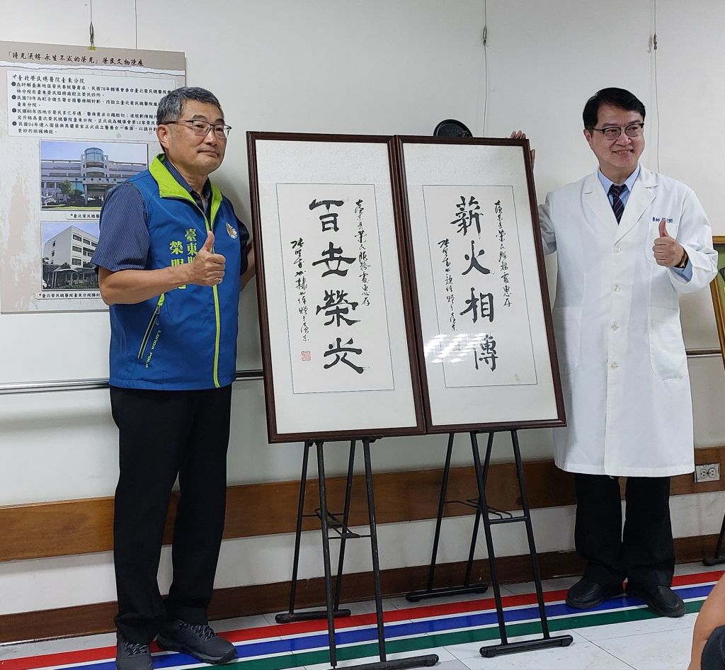 文物展以珍貴影像與物品,串起榮民歷史與時代記憶,展現不屈的信念與愛國精神,喚起人們對榮民無私奉獻的感念。院方特別感謝臺東縣榮服處提供珍貴文物及籌備團隊同仁的用心,儀式最後由胡宗明院長及胡思湘處長一同為展出的文物掛上最後一幅墨寶「薪火相傳、百世榮光」(水墨名家,故榮民張明甫大師的創作),讓活動以最溫馨的方式向榮民致敬。