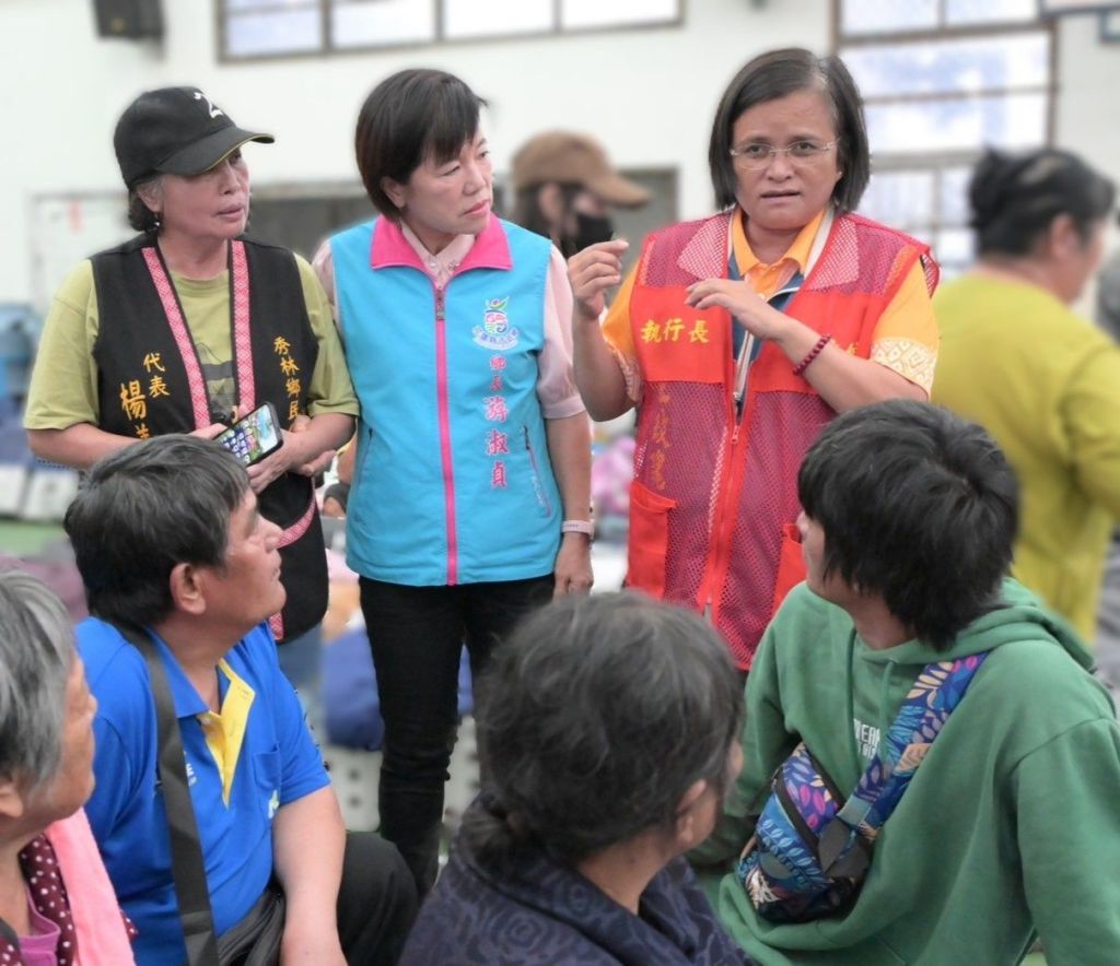 游淑貞鄉長抵達秀林國中收容中心關心鄉民時,秀林鄉長王玫瑰、鄉民代表楊美寶、王沈剛竹等人,對游鄉長帶著團隊跨鄉鎮傳遞溫暖行動表示感動,十足呈現雙鄉攜手互助,務實各項救災配套共力,帶給花蓮互助安心居住的強韌家園能量。