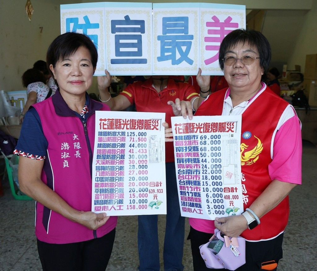 花蓮縣退休防宣協會理事長劉鳳娥表示,義消家人的愛永遠常在,不會因為退休而停止!引此與防宣種子教官王秀妹、游淑貞鄉長共同匯聚全國義消家族的愛…也擋不住遠道而來親送暖愛的各縣市姐姐妹妹們。感謝防宣大隊長游淑貞持續帶領防宣姊妹勇敢向前服務大步走,感謝郭素蘭副大隊長自24日當下即帶領防宣姊妹日日留守災區服務,感謝全國防宣與花蓮防宣隊員愛心接力,服務社會情誼不斷。光復災後重建雖道阻且長,但有全國義消志工的關懷與善行,讓災區的重生之路更加有力量,光復加油、花蓮加油!