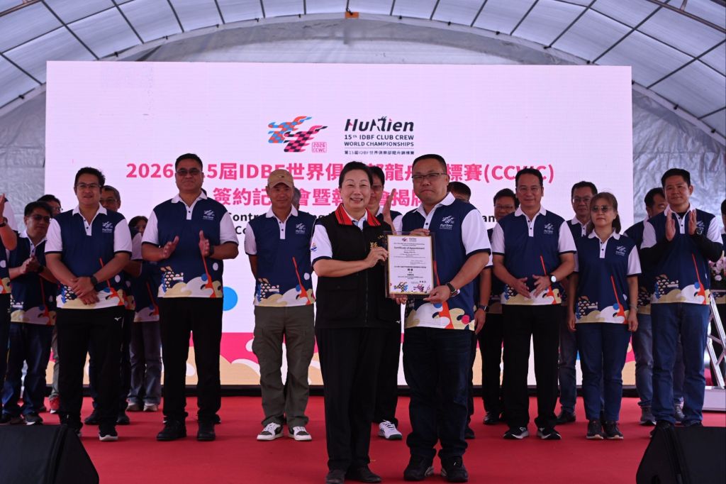 為迎接2026年第15屆世界俱樂部龍舟錦標賽(IDBF Club Crew World Championships, CCWC),花蓮縣政府今(23)日假花蓮縣運動休閒園區舉辦「2026世界俱樂部龍舟錦標賽簽約暨執行委員會揭牌儀式」,由中華民國龍舟協會與國際龍舟聯合會(IDBF)聯合簽署本屆賽事之邀請函,花蓮縣長徐榛蔚宣示,花蓮將全力以赴,為花蓮爭光,為台灣爭光。
