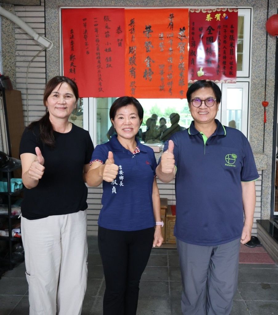 「全國原民特考法警榜首在吉安!」114年公務人員特種考試原住民族考試日前放榜,吉安鄉南昌村傳來令人振奮的好消息!在眾多考生中,張采菲以優異成績勇奪「四等法警」全國榜首,不僅為家鄉爭光,也為吉安青年立下努力向學的典範。吉安鄉長游淑貞昨日特別親自前往祝賀,並與立法委員鄭天財服務處、縣議員周駿宥服務團隊、阿美中會田埔教會楊文豪牧師一同張貼紅榜,恭賀張采菲金榜題名,邁向人生新里程。