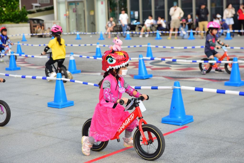 此次比賽統一使用12吋滑步車,依年齡分為2歲、3歲、4歲、5歲及6歲等組別,讓孩子們在安全規劃的賽道上展現自信與速度感。賽場邊家長們加油聲不斷,氣氛熱烈;而在親子闖關區,大小朋友攜手合作完成趣味挑戰,笑聲此起彼落,充分展現家庭間的互動與團結。