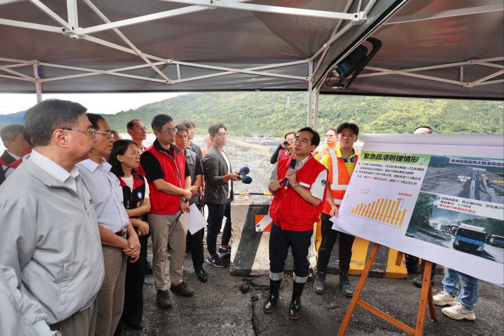 卓院長到場後,依序聽取交通部公路局林福山局長、經濟部水利署林元鵬署長、農業部林業及自然保育署林華慶署長分別說明「台9線馬太鞍溪橋災害修復進度說明」、「馬太鞍溪堤防重建與疏濬進度說明」、「馬太鞍溪堰塞湖國有林地土砂清疏與治理規劃」等報告。包含行政院季連成政委、李慧芝發言人、李孟諺顧問、東部聯合服務中心郭應義副執行長、交通部陳彥伯次長、農業部黃昭欽次長、鄭天財立委等均陪同院長視察。