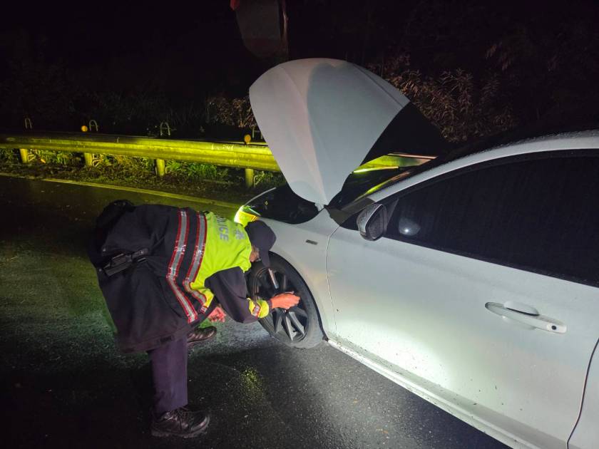 宜蘭縣政府警察局三星分局南山派出所於日前接獲勤務指揮中心通報,台七甲線36公里處有民眾車輛爆胎受困山區,此所巡佐曾勝三接獲通報後,迅速趕抵現場處置。