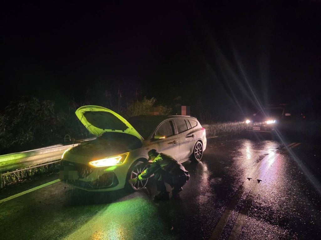 經了解,林姓男子(36歲)當日下午15時許駕駛自小客車,與友人共3人自梨山出發,沿台七甲線往宜蘭方向返台北上班,途中因路面碎石刺破左前輪胎,導致車輛無法行駛,由於現場位於偏遠山區,交通與通訊均不便,林男一行人一時受困。