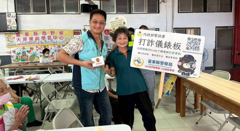 慶祝重陽節活動內容豐富多元,除由鹿野鄉公所發放重陽禮金外,現場並安排流感疫苗施打及國際獅子會免費血糖檢測服務,關懷長者的健康需求。會中並表揚模範老人陳呂美江阿嬤與志工楷模余秀琴阿嬤,肯定她們長年對家庭與社區的奉獻,贏得全場熱烈掌聲。活動之後由關山警分局交通組、偵查隊及瑞源聯合所共同組成的「識詐交安宣導團」實施宣講,針對年長者最常遭遇的詐騙手法與交通風險進行深入淺出的說明。員警們除講解近期常見的「假投資詐騙」、「假冒政府機關名義詐財」等案例外,也提醒長者們,凡接獲不明來電或陌生訊息,務必牢記「一聽二掛三查證」的防詐三步驟,並可撥打165反詐騙專線或110報案諮詢,以確保自身財產安全。所長楊登基指出,近來有不肖分子冒用農會人員名義,謊稱可協助申請老人補助津貼,藉機索取長者的身分證及帳戶資料,甚至要求代辦費,呼籲民眾若遇此類情況,請立即撥打派出所089-581134電話,由員警到場查證,以避免受騙上當。在交通安全部分,宣講團也發送「反光拍拍圈」、「銀髮族交通安全手冊」及「微型電動二輪車安全須知」等宣導品,提醒長者在清晨或黃昏外出運動時,務必穿著亮色或具有反光材質的衣物,或隨身攜帶照明設備如手電筒,以提高自身能見度,降低事故風險,確保行的安全。