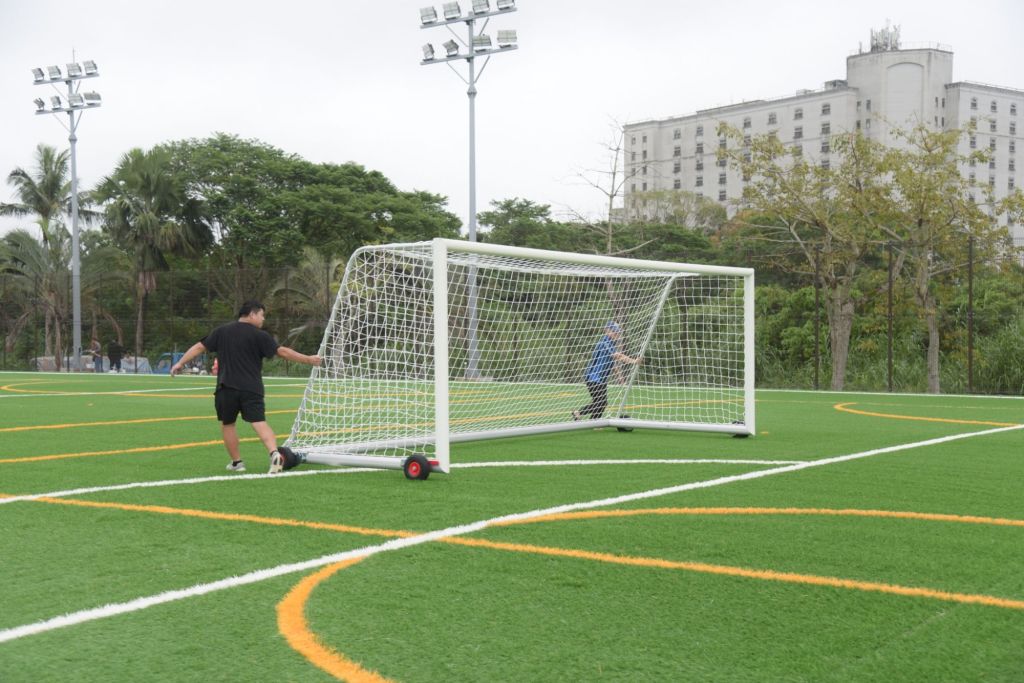 新建足球場設施完善,包含標準8人制人工草皮球場、圍網、灑水噴灌系統、照明設備、監視及廣播系統、活動看臺,以及兼具無障礙與性別友善設計的景觀廁所、更衣與淋浴間、儲藏室與服務中心等設施,同時配有人工整草機維持場地品質。