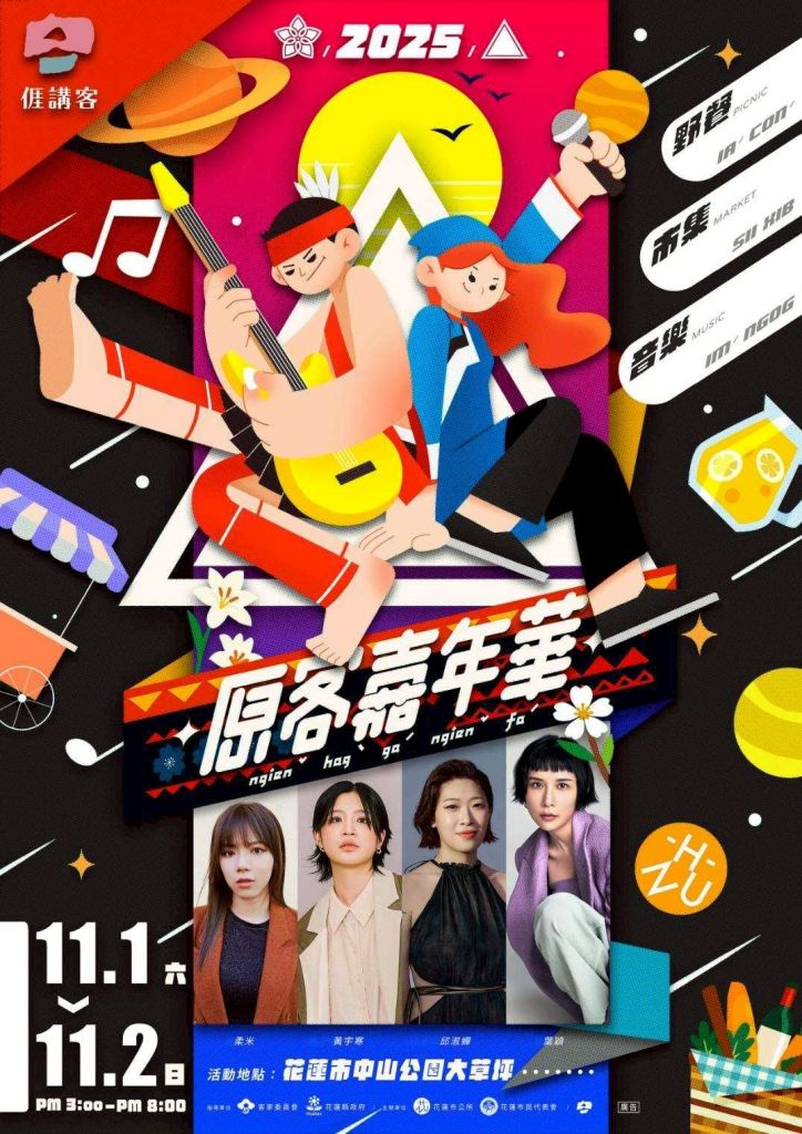 一年一度的「原客嘉年華」活動將於11月1日至2日在花蓮市中山公園大草坪盛大舉行,這場融合原住民與客家音樂、美食及文化的嘉年華會,即將帶來最暖心的音樂饗宴。