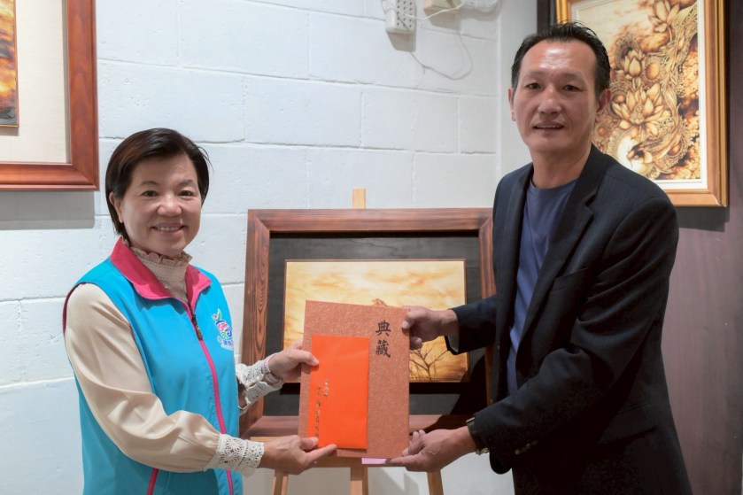 吉安鄉長游淑貞先前出席花蓮縣美育交流學會與花蓮監獄攜手策辦的「藝文聯展」時,對於烙畫藝術家翁瑞崇老師發起「公益加碼・藝術競標」活動,捐出兩幅以「螞蟻精神」為創作理念的烙畫作品,感動不已,率先響應投下愛心標單,自掏腰包得標《承擔》作品。翁老師日前親自將作品交給鄉長,同時將公益競標所得捐給鄉公所捐贈平台指定「光復鄉賑災」專款,讓善緣義舉透過藝術創作與個人典藏再延續,而游淑貞將偕鋼鐵團隊揹負社會愛的量能,持續關懷光復鄉受災鄉親度過瓶頸。