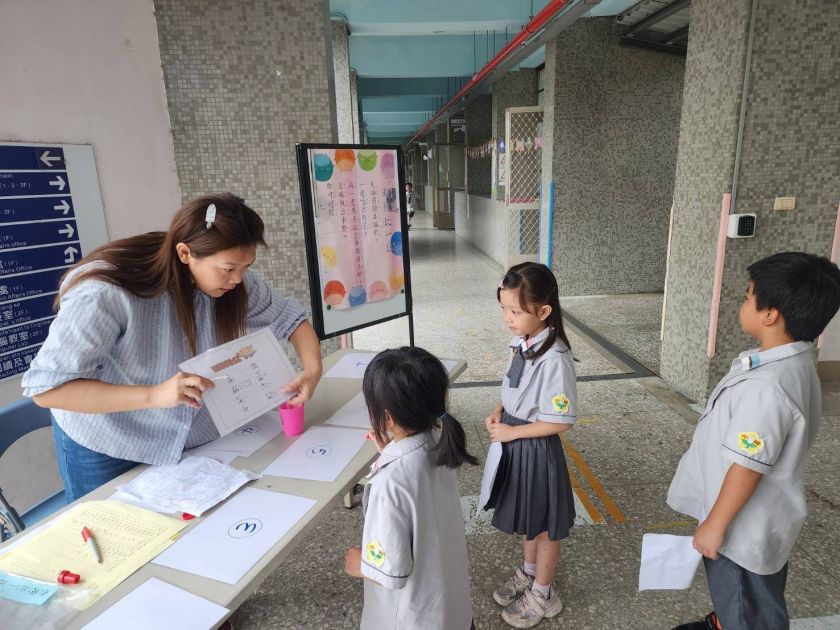 此次活動以遊戲化學習為核心,將評量內容巧妙融入多項趣味關卡中,包括「注音超市」、「對對碰」、「童詩童話」、「超級比一比」以及「圖發奇想」等五大主題。孩子們在各關卡中,透過認讀、拼音、朗讀、表演與創意繪圖等多元表現,展現前十週注音教學的學習成果。每完成一關任務,即可獲得集點章,集滿後還能兌換小禮物,讓孩子在闖關過程中充滿動力與笑聲。