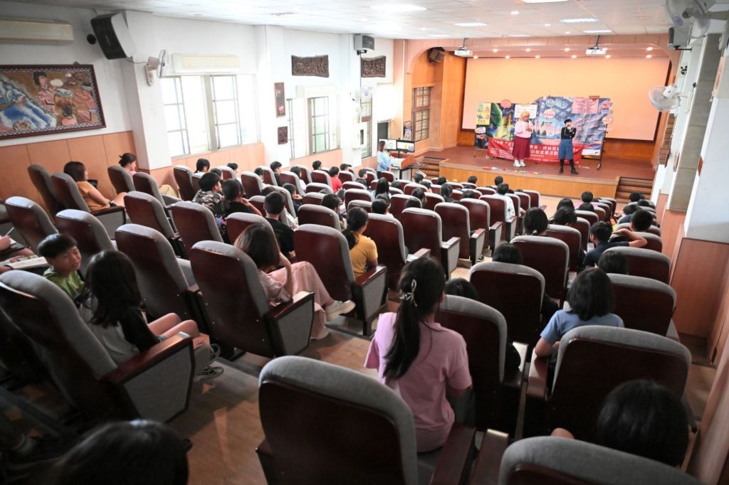 舞台劇以真實案例改編,將學童可能面臨的網路交友陷阱轉化為情境故事,讓原本抽象的網路風險更具體、更容易理解。演員們以活潑肢體與幽默對話,引導孩子在輕鬆氛圍中學習重要觀念;互動環節更掀起熱烈參與,學童踴躍舉手分享正確做法,將安全意識內化為具體行動。