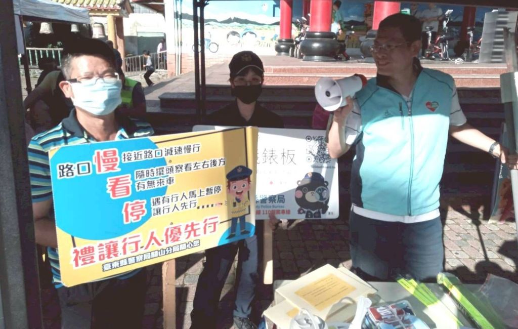 臺東縣警察局關山分局持續推動社區治安與交通安全教育,透過深入社區的方式,使「識詐」、「交安」及「反暴零容忍」的觀念能更貼近民眾生活。此分局「識詐交安宣導團」於昨(16)日14時許受關山鎮公所之邀,參與「關愛零暴・山情相伴」高齡友善社區成果展暨防暴踩街活動,並在現場設攤宣講,與社區長者、家庭及孩童面對面互動,共同以行動支持守護弱勢與打造安全家園的目標。