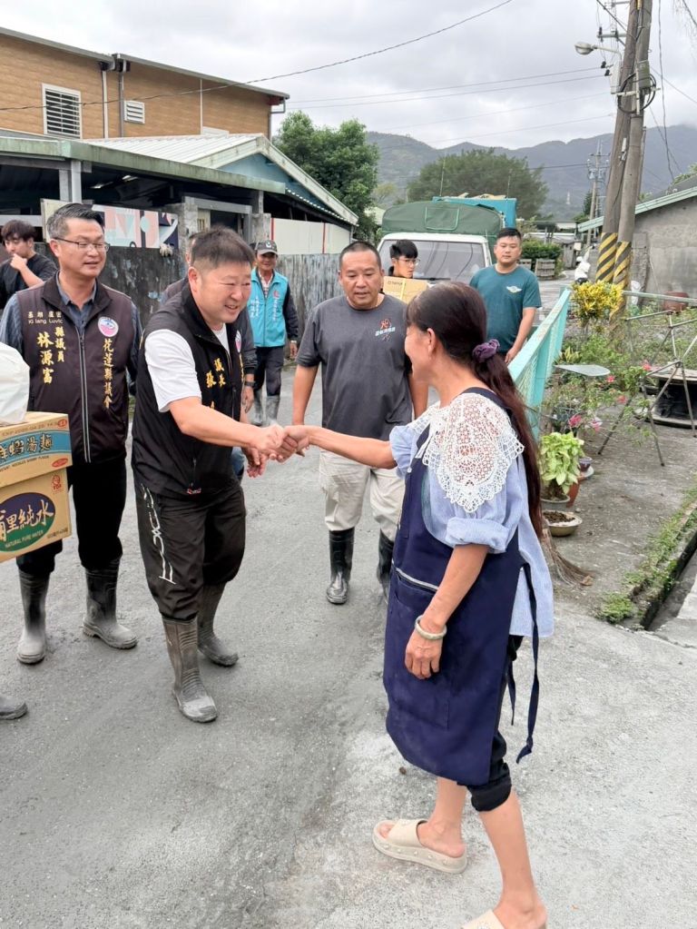 現場可見多戶住家仍在忙於搬運家具、清洗泥水。為協助鄉親減輕負擔,張峻議長特別準備大量物資,一戶一戶親自送上,期盼在復原的第一時間,提供最貼近需求的實質幫助。