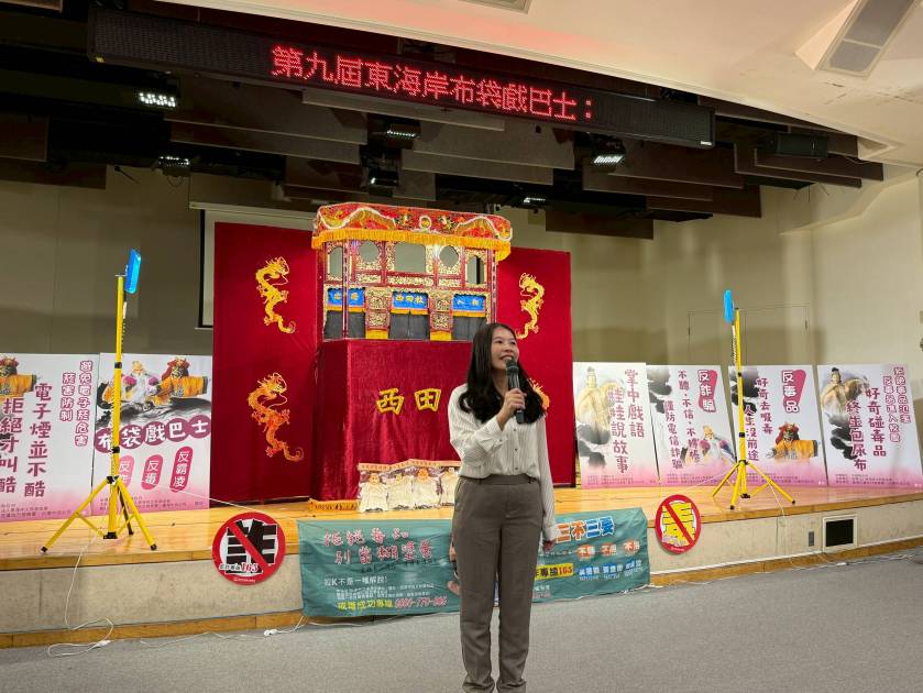 陳佳秀檢察長致詞表示,透過布袋戲這個具本土文化底蘊的藝術形式,讓法律觀念以故事方式傳遞,能幫助孩子更自然地理解「守法即自保」的意涵。陳檢察長指出,國中小階段正是孩子學習自我思辨能力與價值觀形成的關鍵時期,如何在這個階段將正確的信念與善的種子深植於孩子心中,是極其重要的事。