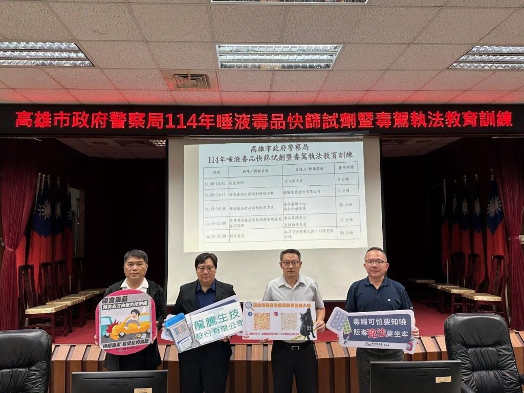 為有效防制吸毒後駕車行為,維護用路人交通安全,高雄市政府警察局在刑事警察大隊召集各單位參加「唾液毒品快篩試劑執法教育訓練」,透過分組實際操作,指導第一線執勤員警正確使用唾液毒品檢測試劑,以提升交通現場查緝效能。