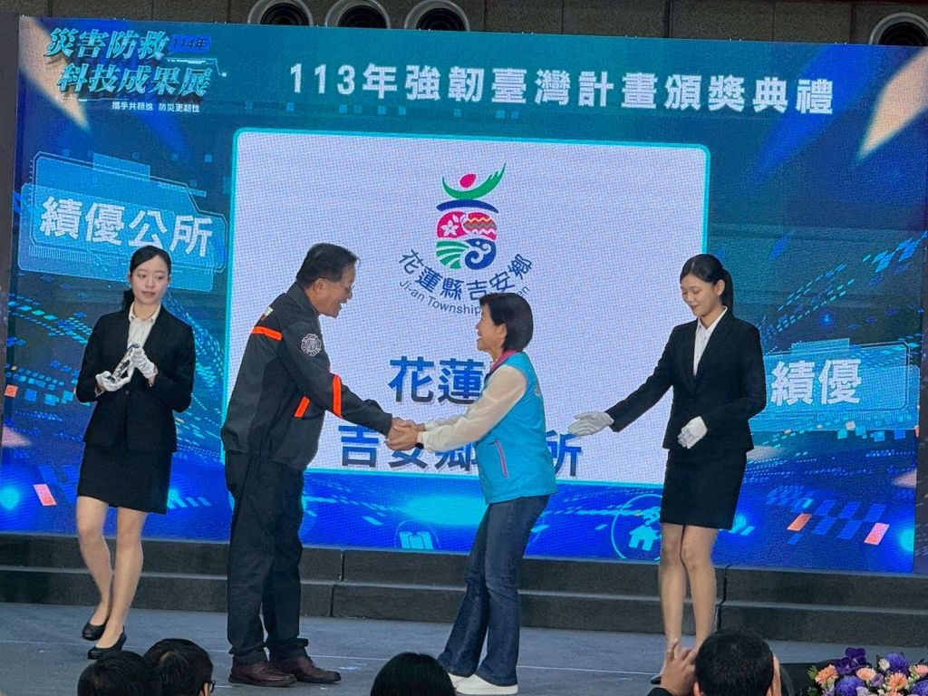 吉安鄉公所推動「強韌臺灣大規模風災震災整備與協作計畫」表現卓越,獲內政部公開表揚為「113年全國績優公所」殊榮,展現吉安鄉有效整合全民防災量能的堅實成果。日前鄉長游淑貞率同民政課長前往台北出席受獎,隆重的「113年績優單位及114年績優韌性社區頒獎典禮」,再度賦予吉安鄉團隊的防救災整備量能與績效公開肯定。