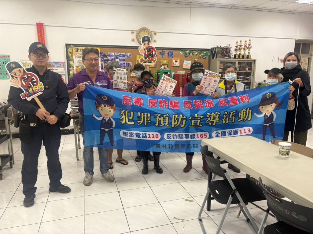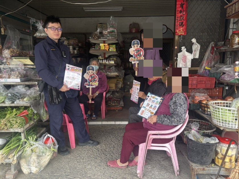 因應「全民+1政府相挺」普發現金專案上路,雲林縣警察局斗南分局東和派出所警員詹弘瑋至荷苞村老人活動中心及村里各商家宣導現代詐欺手法的多樣性。