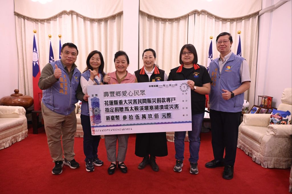 縣長徐榛蔚表達誠摯感謝,她表示,壽豐鄉親展現守望相助的精神,這筆愛心善款將全數匯入「花蓮縣重大災害民間賑災捐款專戶」,指定用於花蓮縣馬太鞍溪堰塞湖潰堤災害,縣府將秉持公開透明原則,妥善運用各界所捐贈的資源,全力推動災後復原與家園重建工作,讓受災民眾能夠早日恢復正常生活。