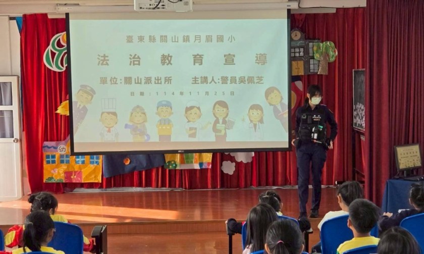 臺東縣警察局關山分局關山聯合所今(26)日8時10分,前往關山鎮月眉國小,針對校園常見安全議題辦理「反詐騙、性別平等、反霸凌、交通安全及毒品防制」等多面向宣講。為提高參與度,警方特別設計有獎徵答與即時提問互動,使全校師生在活潑、輕鬆的氣氛中,加深正確安全觀念。
