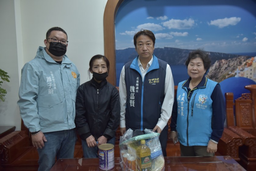 此案由花蓮縣議員魏嘉賢關懷轉介,魏議員也偕同國盛里里長張芝瑜到場了解夏小姐近況,鼓勵她勇敢面對生活困難,有需要幫助的部分可以隨時聯絡,市公所、服務處以及里長都會全力協助。