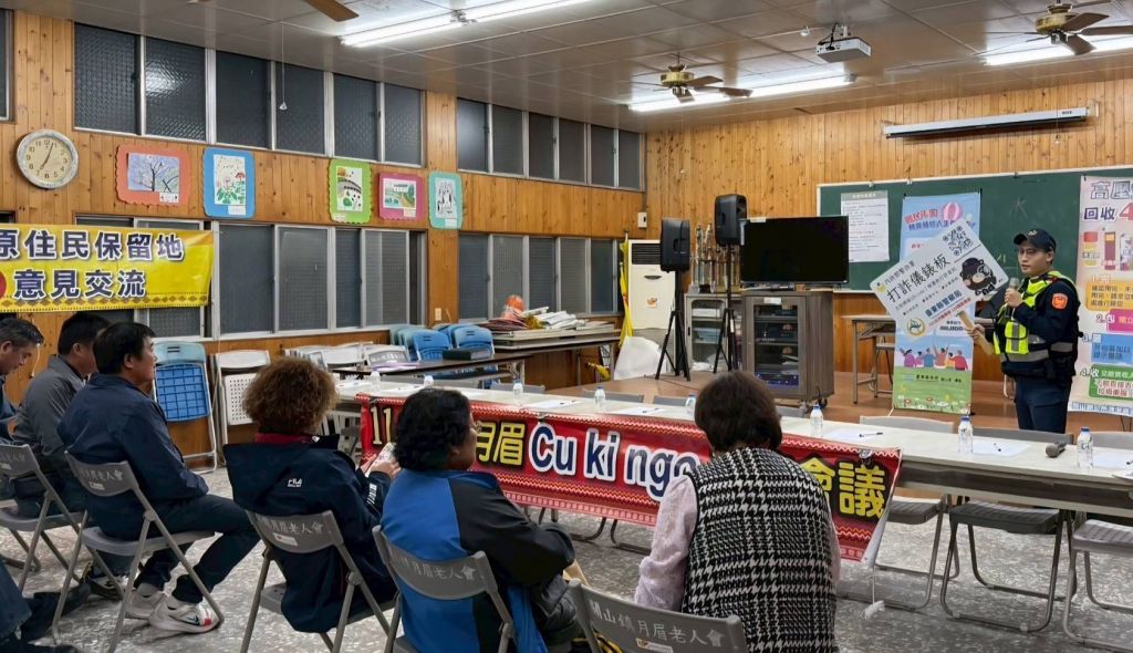此次活動特別結合部落會議進行宣講,除了讓員警的重要宣導資訊能即時傳達給族人,也讓部落聲音更有力量,透過集體討論與共識形成,使族人在法律架構下獲得充分保障,守護部落的傳統領域、文化價值與土地權益。部落會議不僅是族人共同決定重大事項的平台,也能有效避免意見被忽略,展現部落自主與團結的力量。宣講現場,員警針對近期最受關注的「普發一萬元現金」相關詐騙手法,進行ATM防詐騙重點提醒,提醒族人切勿點擊不明簡訊連結、不依照陌生指示操作ATM轉帳,更不要提供金融卡、驗證碼及個人資料,牢記防詐三步驟:「一聽、二掛、三查證」,隨時撥打165反詐騙專線或110求證,避免辛苦累積的積蓄遭詐騙集團騙走。在交通安全方面,員警同步宣導最新「無照駕駛提高罰則」規定,提醒年輕族人勿因一時方便而無照上路,不僅違規受罰,更可能造成無法彌補的傷害;同時也呼籲用路人務必遵守「車輛慢看停、行人安全行」原則,夜間外出應配戴反光配件,提高能見度,降低事故風險。宣講過程中,員警透過實際案例分享,讓族人更能感同身受,提升自我保護意識。此外,也特別加強婦幼安全宣講,提醒家長留意孩童行蹤,避免夜間單獨外出,女性族人若遇可疑人士尾隨,應立即前往人多明亮處並撥打110求助。