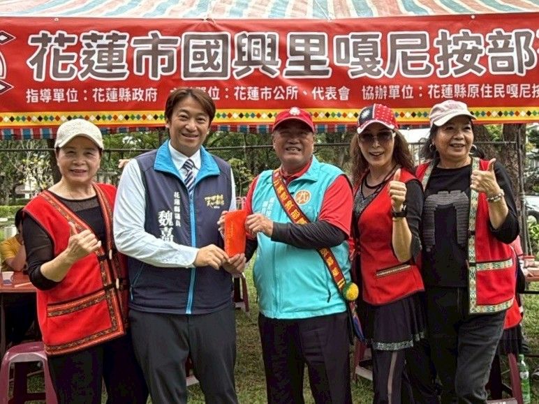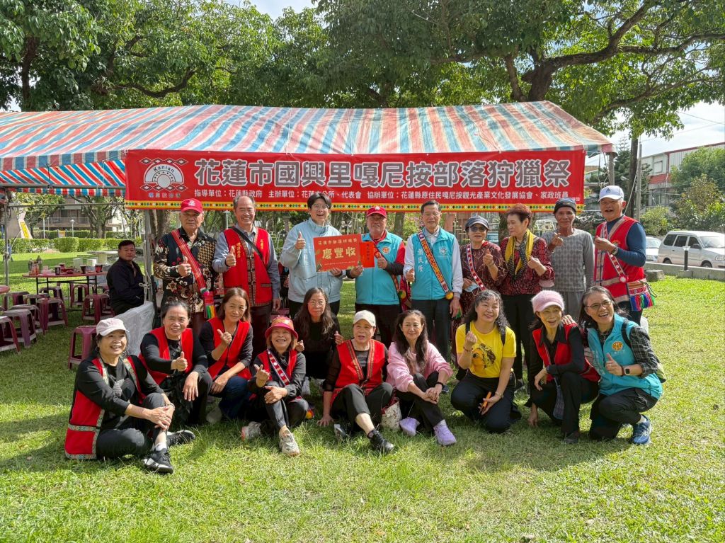 花蓮市長魏嘉彥偕原行課長張金蓮抵達現場向族人致意,縣議員魏嘉賢、市民代表蕭民隆亦到場,為今年度各部落狩獵祭活動正式揭開序幕。