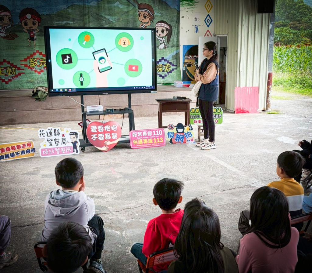 為提升孩童網路使用安全、正確認識身體的界線,花蓮縣警察局婦幼警察隊前往萬榮鄉見晴國小,進行婦幼安全及反詐騙宣導,協助學生從日常生活中辨識風險,使孩子能從實際案例中學習如何在面對不當接觸、網路威脅或陌生訊息時做出正確反應。