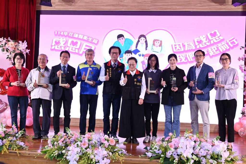 為感謝花蓮縣在醫療、公共衛生、藥事服務、健康促進、長照照護、心理健康促進、防疫與志願服務等領域中表現傑出的150位優良醫療機構、協會、專業人員與保健志工,花蓮縣衛生局於今(5)日在大禮堂舉辦「114年因為感恩,我們一起前行」頒獎典禮,邀請百餘位受獎者與家屬共同參與,分享榮耀、見證成果,場面溫馨盛大。祈願讓花蓮鄉親能夠得到良好的健康照護,打造更美好的花蓮。