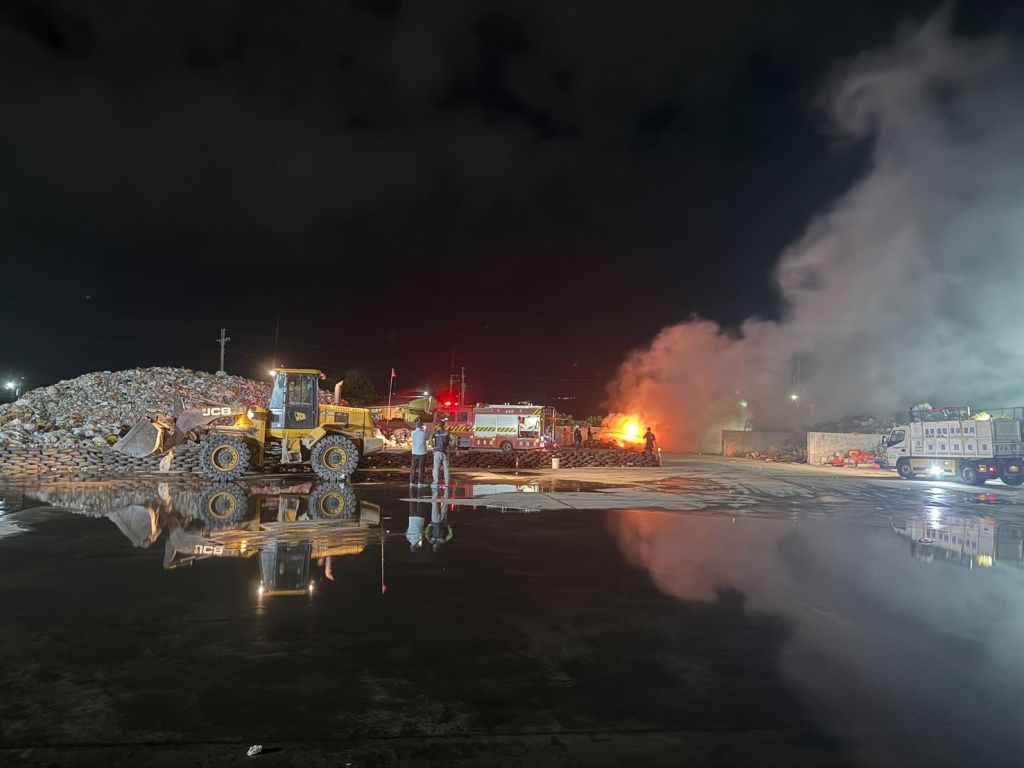 臺東市資源回收場於昨(8)日晚間約6時30分左右發生火警,清潔隊員在巡檢時立即發現異狀,第一時間啟動緊急應變措施。市長陳銘風接獲通報後,也立即趕抵現場關心消防與清潔隊同仁的狀況。