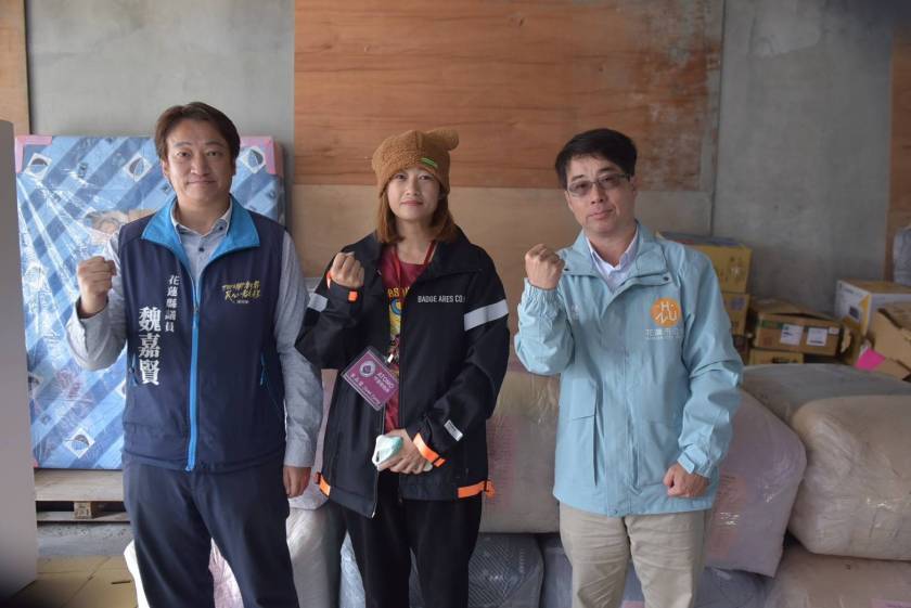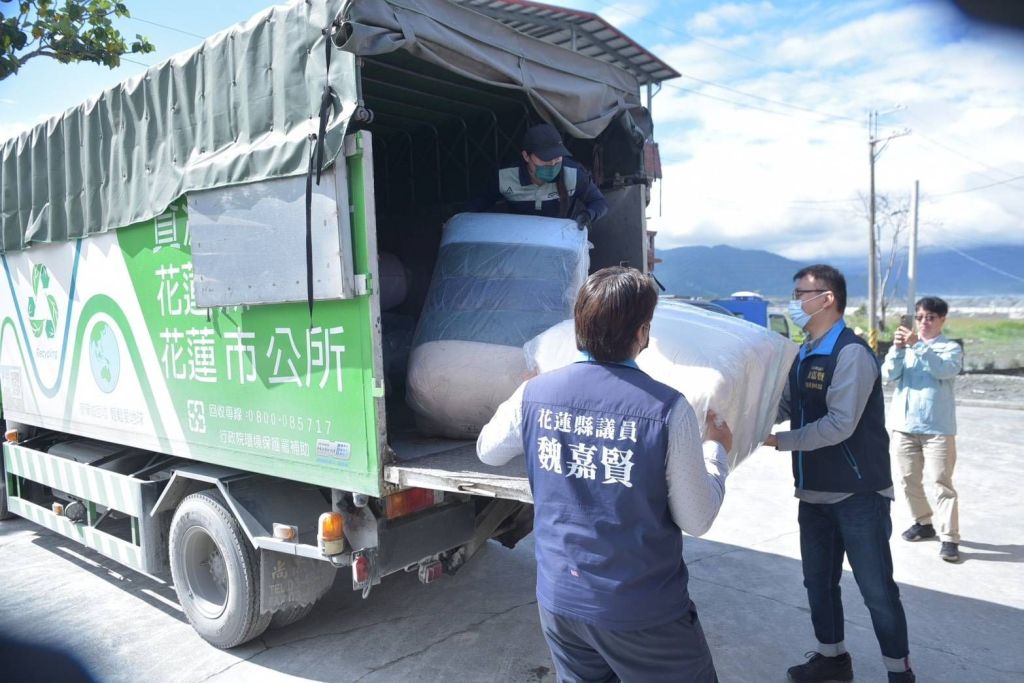 此次捐贈物資數量龐大,花蓮市公所清潔隊主動協助物資存放、整理及載運作業,讓捐贈流程更加順暢。12月9日花蓮縣議員魏嘉賢偕同花蓮市公所蘇浩然秘書與清潔隊同仁南下光復鄉,將棉被等寢具分送至各村落,期盼把社會關懷第一時間送到需要的朋友手中。