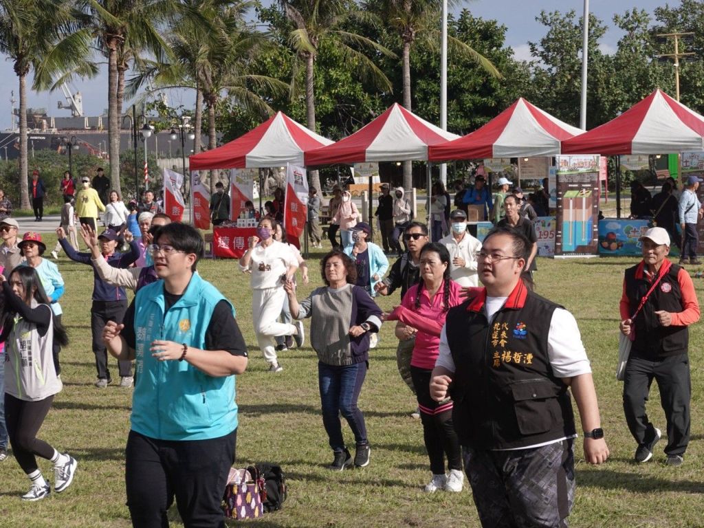 此外,現場也設置社福、防災、廉政、客語推廣及資源回收等宣導攤位,並有警政、國軍、消防、環保等單位,以及遠傳電信共同參與,透過互動方式向市民宣導公共政策與生活知識,讓健走活動兼具休閒、教育與公共服務功能。