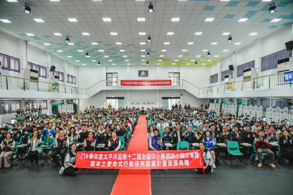 由花蓮縣政府教育處與稻香國小共同辦理的「114學年度太平洋盃全國中小學網路小論文專題暨本土使命式行動研究競賽成果發表會」今(17)日盛大舉行。競賽自初審起吸引全國 181 隊報名、266 位教師與 478 位學生參與,最終 164 隊晉級決審,100 隊脫穎而出獲得獎項,展現教育在推動研究寫作與本土行動學習的成果。