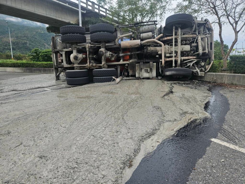 事故發生於迴轉道內,現場大量水泥覆蓋路面,警方到場後,立即封鎖迴轉道進行交通管制,主線車道通行不受影響。目前現場由拖吊車業者進行車輛拖吊及路面清理作業,預計短時間內完成恢復。