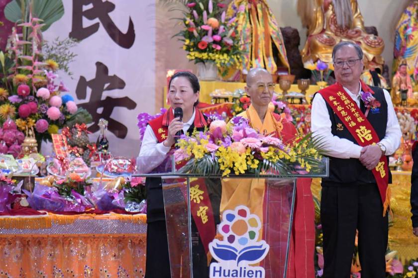 感恩祈福法會儀式過程中,縣長徐榛蔚偕同立法委員傅崐萁、縣府秘書長饒忠及民政處代理處長李葳等人,行三獻吉禮與三跪十二叩首最敬禮,並恭讀祈福疏文。除了感恩諸佛菩薩與眾神靈的護佑,更誠心祈求上蒼賜福花蓮: