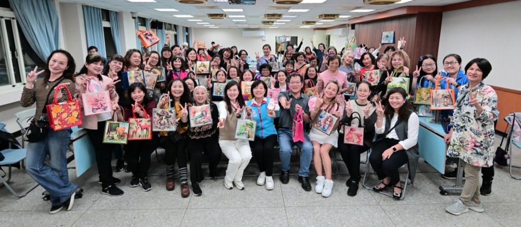 活動現場洋溢著笑聲與討論聲,學員們圍坐在一起,從配色選材、圖樣到構圖細節,彼此熱烈交流心得。完成作品後更迫不及待分享成果,情誼在一貼、一抹間慢慢凝聚,完成了一件件獨一無二的作品。游淑貞鄉長除了聆聽學員們的創意想法,也走近觀賞每件作品的細節與巧思,並與大家一起動手做,現場掌聲與笑聲此起彼落,氣氛溫馨熱絡。