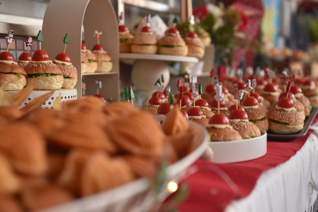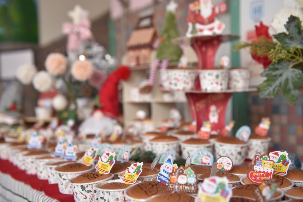 今年聖誕大餐準備了凱薩火腿生菜可頌、時蔬義大利麵、燻雞小漢堡、瑪德蓮、海綿蛋糕以及手工餅乾,配合精美的布置,在這個歡樂且溫馨的日子,小朋友和老師們、家長們一起分享美味大餐,小朋友們在叮叮噹的音樂中,吃著美味的食物,共同歡度了美好的一天。