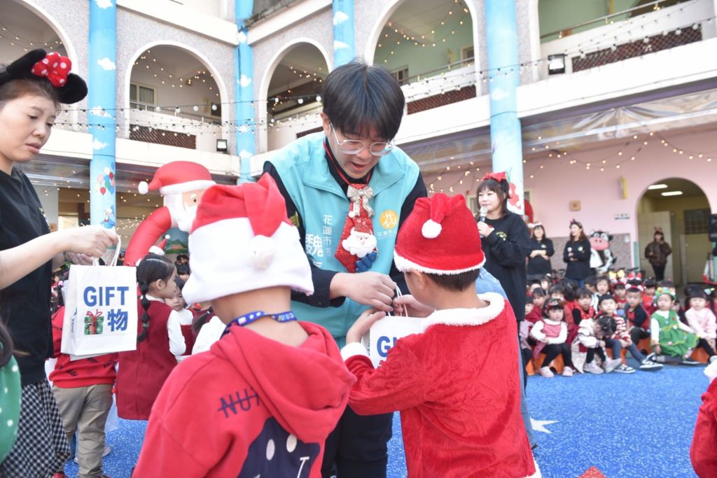 花蓮市立幼兒園今(23)日上午在園區舉辦一年一度的溫馨聖誕節活動–「2025閃亮亮耶誕夜」,除了孩子們精彩的表演外,園方更準備了豐盛的聖誕大餐,魏嘉彥市長、幼兒園長李菲凌身上都穿戴著應景的裝扮,一起和孩子唱唱跳跳過聖誕,感受聖誕節的氛圍。魏市長也帶來豐富的聖誕禮物給孩子們,並感謝市幼教學團隊精心安排的聖誕活動,讓孩子的童年留下美好的回憶。